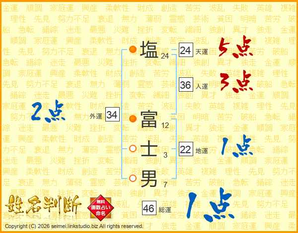 塩富士男さんの総運は46画の1点!
