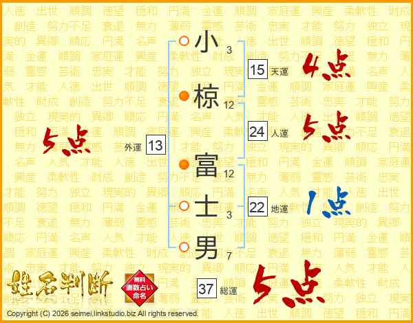 小椋富士男さんの総運は37画の5点!