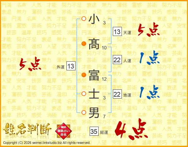 小髙富士男さんの総運は35画の4点!