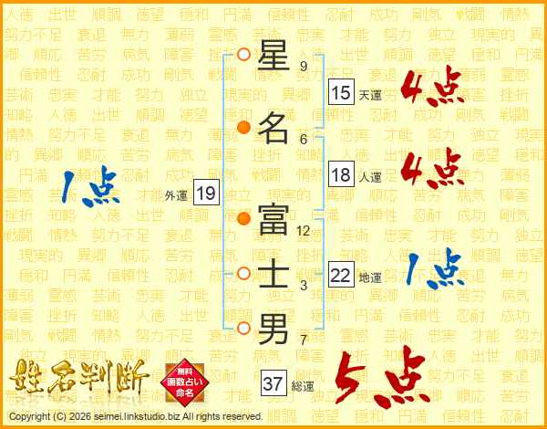 星名富士男さんの総運は37画の5点!