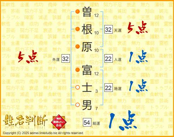 曽(12画)根(10画)原(10画) 富(12画)士(3画)男(7画)