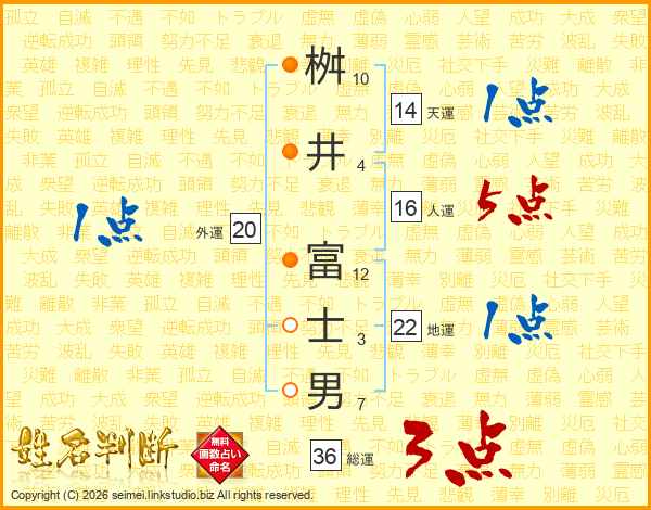 桝井富士男さんの総運は36画の3点!