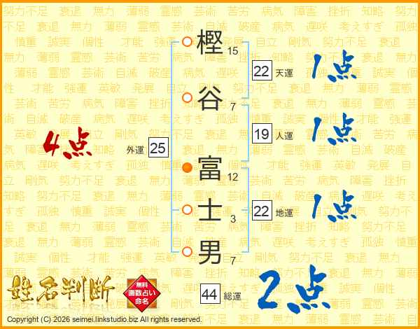樫(15画)谷(7画) 富(12画)士(3画)男(7画)