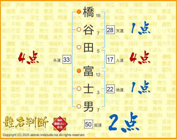橋谷田富士男さんの天運は28画の1点!