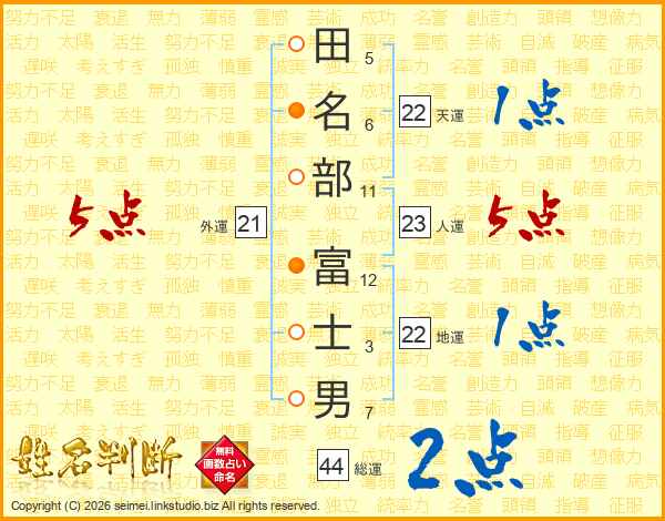田名部富士男さんの総運は44画の2点!