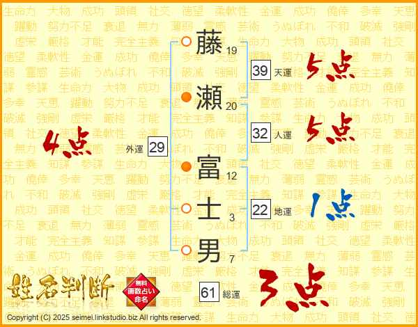 藤(19画)瀬(20画) 富(12画)士(3画)男(7画)
