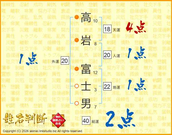 高岩富士男さんの天運は18画の4点!