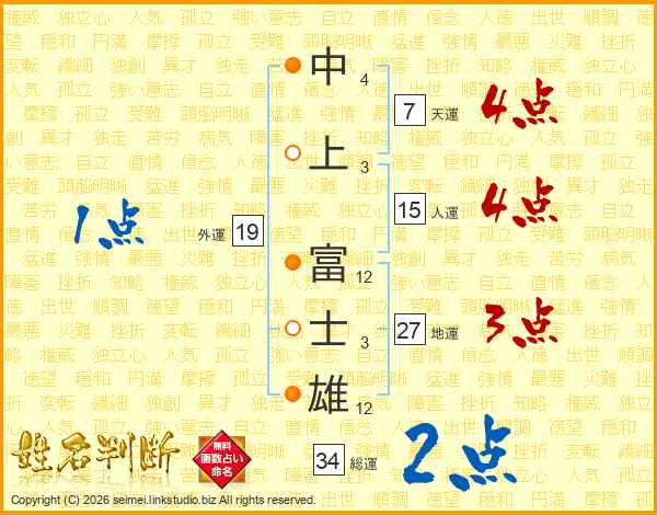 中上富士雄さんの人運は15画の4点!
