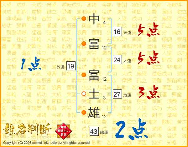 中富富士雄さんの人運は24画の5点!