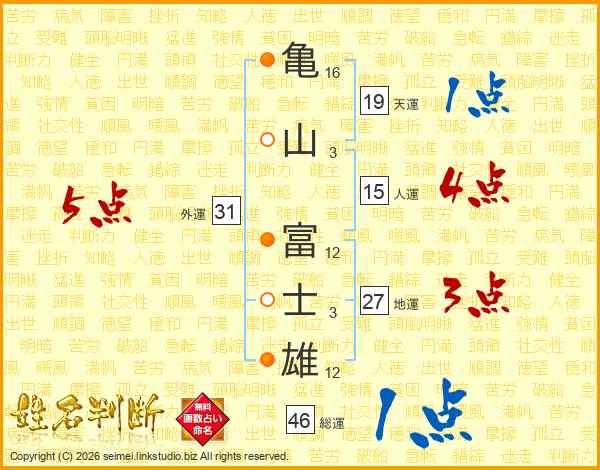亀山富士雄さんの総運は46画の1点!