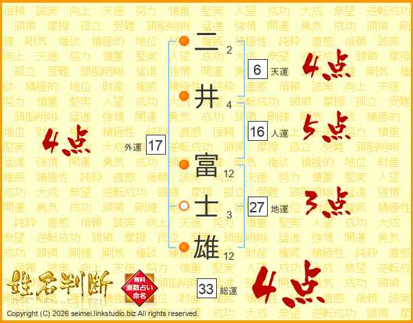 二井富士雄さんの総運は33画の4点!