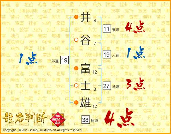 井谷富士雄さんの総運は38画の4点!