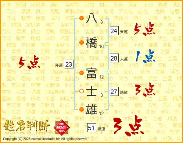 八橋富士雄さんの天運は24画の5点!