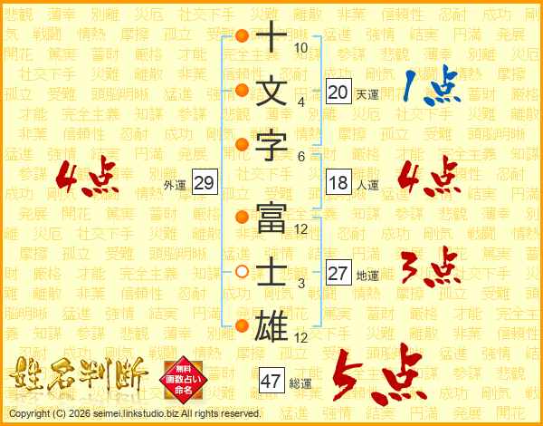 十文字富士雄さんの総運は47画の5点!