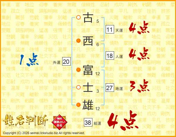 古西富士雄さんの総運は38画の4点!
