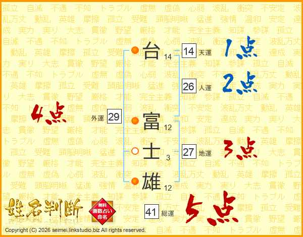 台富士雄さんの総運は41画の5点!
