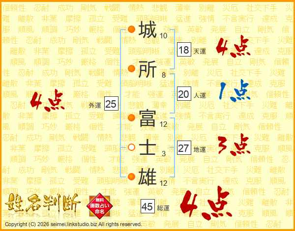 城(10画)所(8画) 富(12画)士(3画)雄(12画)