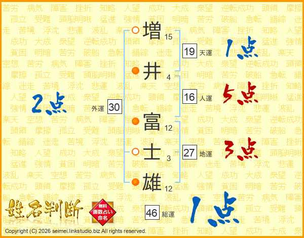 増(15画)井(4画) 富(12画)士(3画)雄(12画)