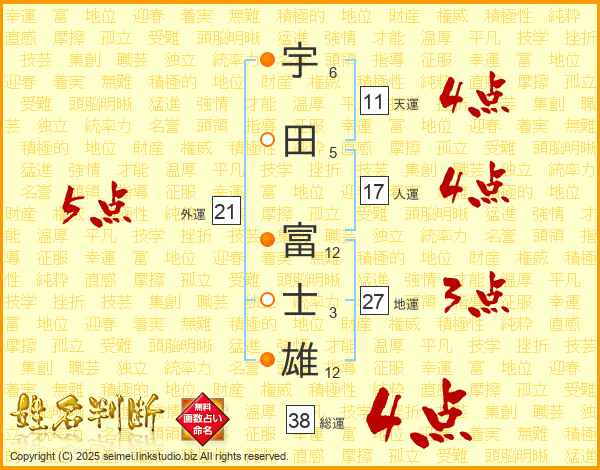 宇田富士雄さんの総運は38画の4点!