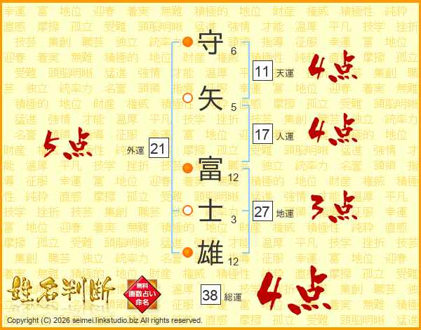 守矢富士雄さんの総運は38画の4点!