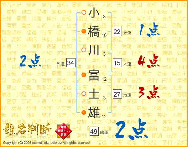 小橋川富士雄さんの人運は15画の4点!
