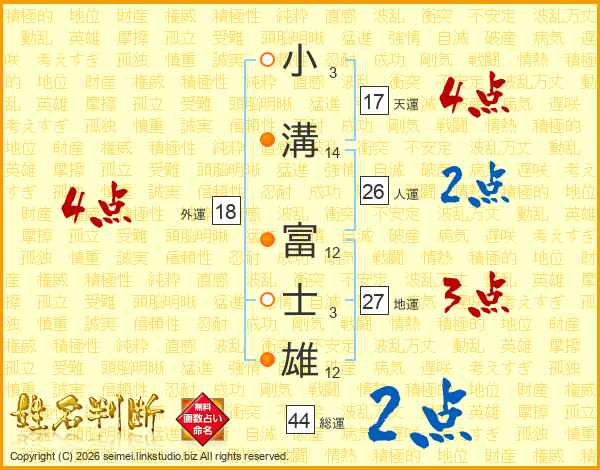 小溝富士雄さんの人運は26画の2点!