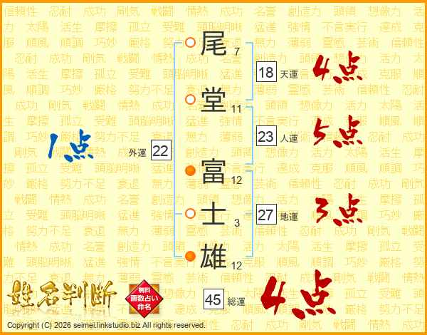 尾堂富士雄さんの総運は45画の4点!
