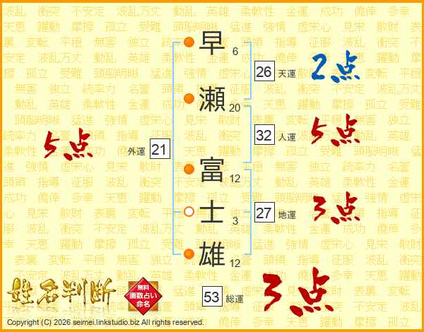 早瀬富士雄さんの人運は32画の5点!