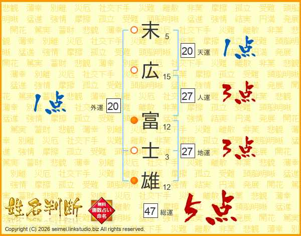 末広富士雄さんの人運は27画の3点!