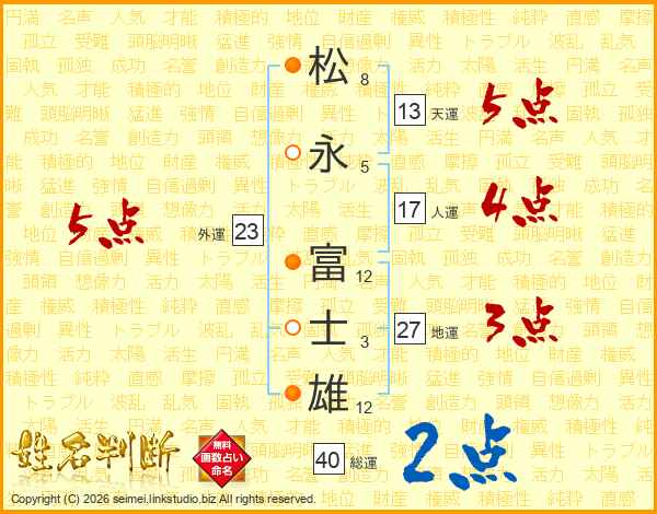 松(8画)永(5画) 富(12画)士(3画)雄(12画)