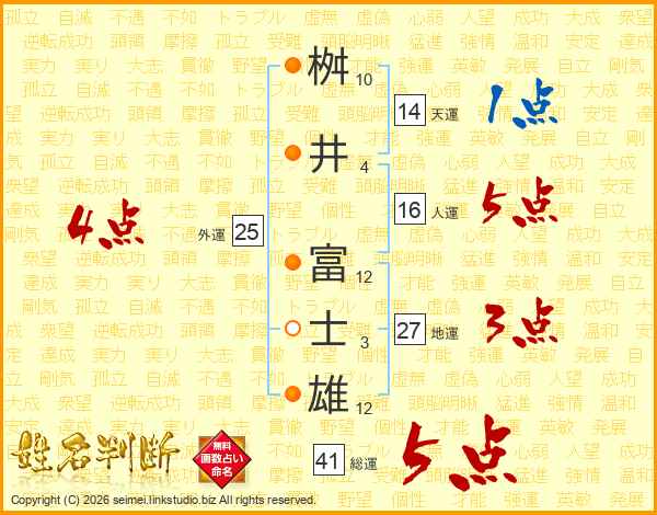 桝井富士雄さんの総運は41画の5点!
