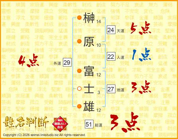 榊原富士雄さんの天運は24画の5点!