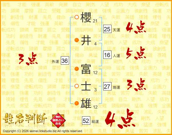 櫻(21画)井(4画) 富(12画)士(3画)雄(12画)