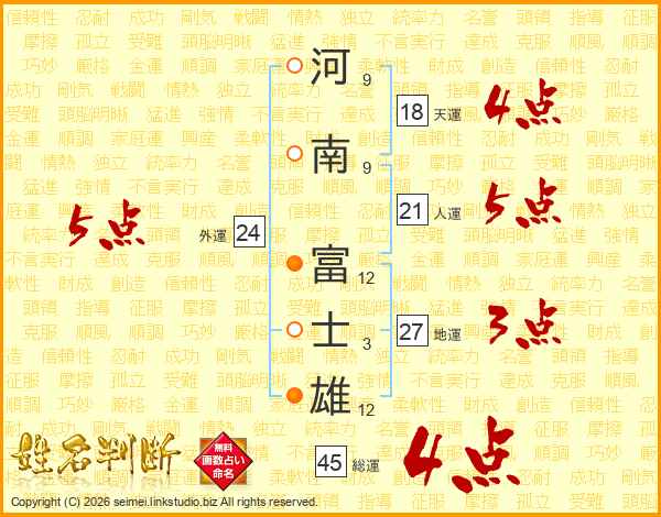 河南富士雄さんの天運は18画の4点!