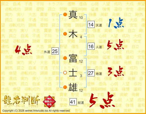真木富士雄さんの総運は41画の5点!