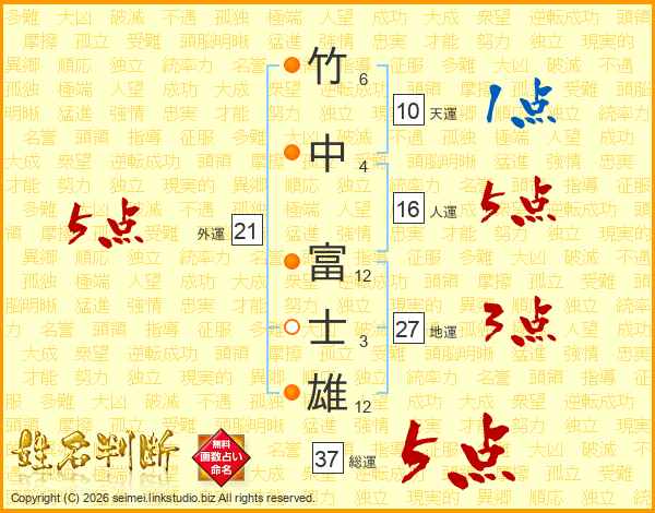 竹中富士雄さんの総運は37画の5点!