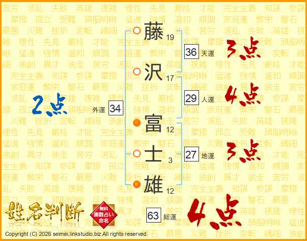 藤沢富士雄さんの天運は36画の3点!
