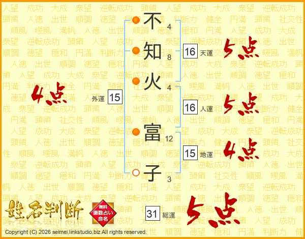 不知火富子さんの総運は31画の5点!