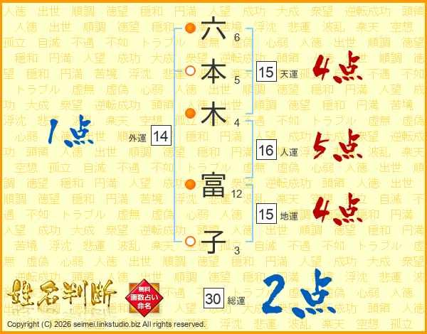 六(6画)本(5画)木(4画) 富(12画)子(3画)