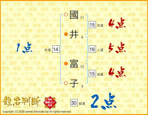 國井富子さんの総運は30画の2点!