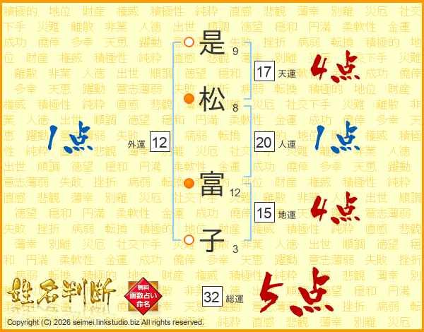 是松富子さんの総運は32画の5点!