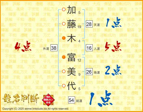 加藤木富美代さんの総運は54画の1点!