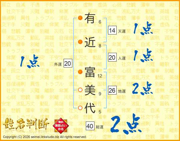 有近富美代さんの地運は26画の2点!