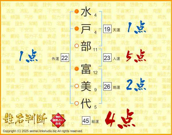 水戸部富美代さんの総運は45画の4点!