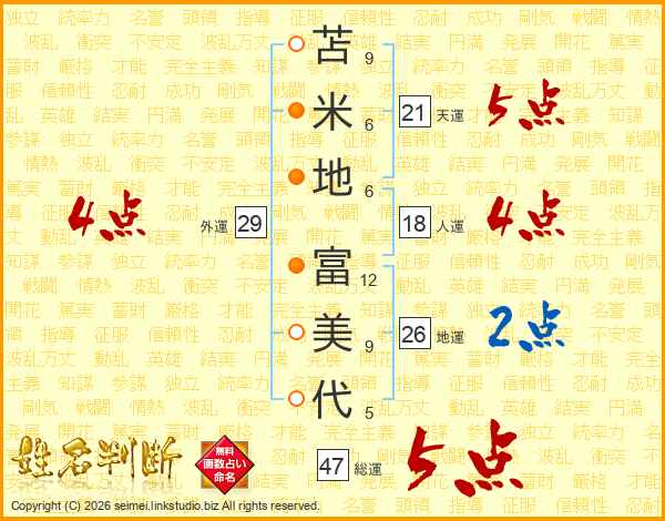 苫米地富美代さんの総運は47画の5点!