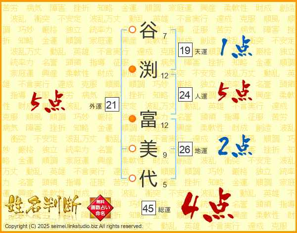 谷渕富美代さんの総運は45画の4点!