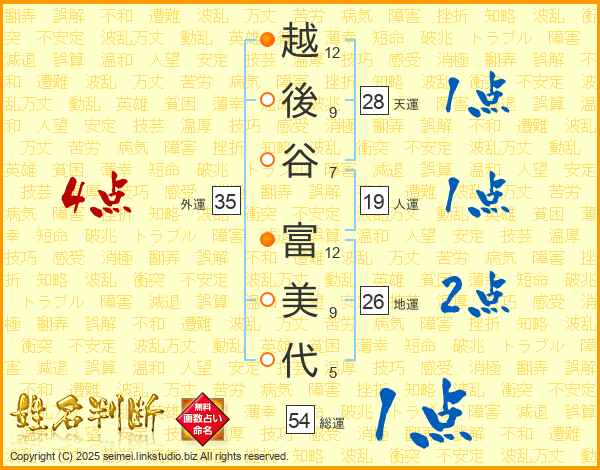 越後谷富美代さんの総運は54画の1点!