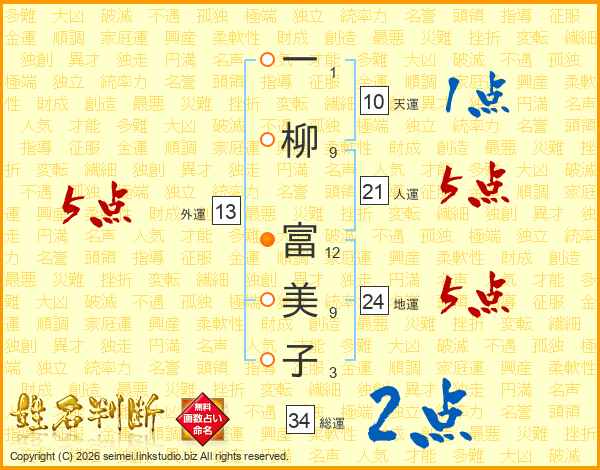 一柳富美子さんの外運は13画の5点!