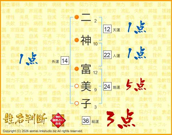 二神富美子さんの人運は22画の1点!