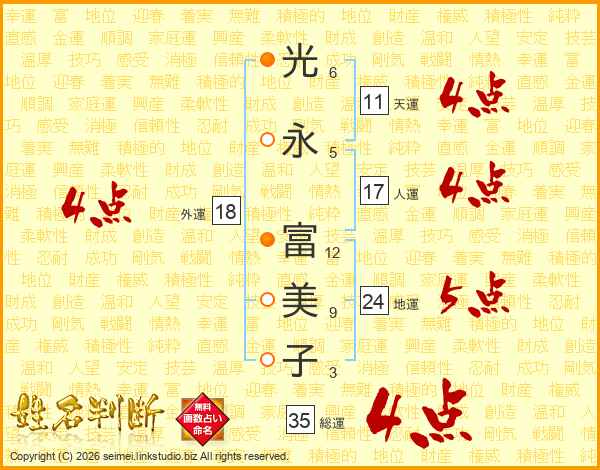 光(6画)永(5画) 富(12画)美(9画)子(3画)